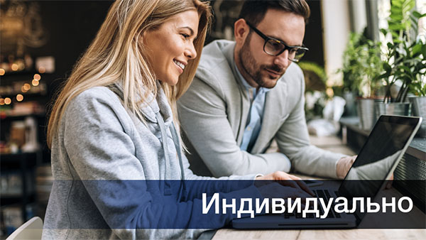 Индивидуальное обучение - это очное или онлайн обучение, адаптированное лично для Вас. Подходящий вариант для тех, кто хочет получить конкретные знания в комфортных условиях: Вы учитесь по специально составленному учебному плану и получаете только те знания, которые Вам нужны. Вам не нужно подстраиваться под темп группы, ведь все внимание преподавателя посвящено только Вам!